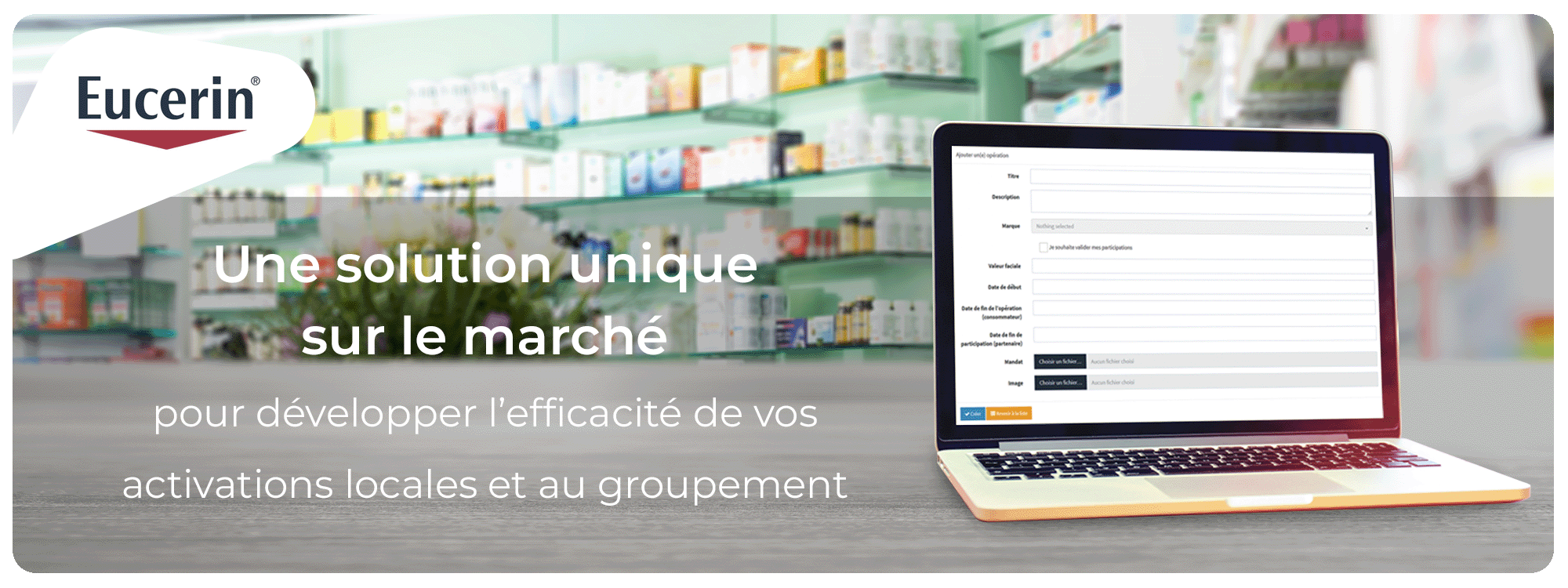 Une plateforme dédiée à la force de vente d’Eucerin. Les délégués pharma peuvent rapidement et simplement mettre en place les activations promotionnelles dont des mécaniques de remises immédiates (% ou €) et de visibilité.
